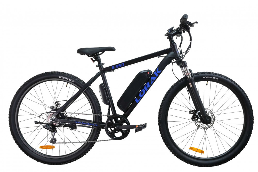 LORAK E-350 - новый электровелосипед компании Lorak. Модель имеет шустрый двигатель 350 Вт., фирменный велокомпьютер с гибкими настройками и LCD-дисплеем, покрышки Kenda на колёсах 27.5"